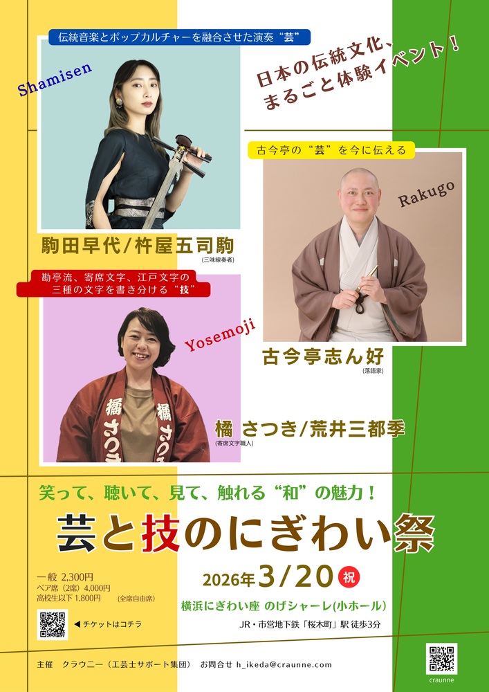 落語で笑い、三味線演奏を聴き、寄席文字の世界を見て、さらには伝統工芸品に実際に触れて…。”和”の世界を存分に楽しむことができる文化イベントです。落語ファン、民謡・三味線ファン、伝統工芸ファン、そして地域住民の皆様のご参加を心よりお待ちしています!